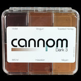 From the Cannom Collection of PM Colors, comes the  Dark 3 Palette.   Based on the original William Tuttle cream/wax formulas, these six colors are favorites of four-time Oscar winner, Greg Cannom, and he has used them to create many of his most famous makeup characters.  The Cannom Dark 3 Palette has been a staple part of Greg's makeup kit and it has helped to define his career.