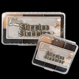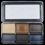The Stipple & Stubble Palette is a collection of six colors designed to give you  realistic subtle beard stubble, hair effects and shading.  Featuring Dark Brown from the Hair Illustrator Scalp Palette, Aged Black from the Tattoo Classic Collection - plus four new colors: Straw, Dark Blond, Shadow Gray and GRB.  All colors can be used as-is, or mixed to create a custom shade for your look.  Also available is the On Set Stipples & Stubbles Palette