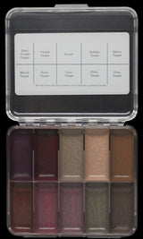 The On Set Character Contours Palette is a compact version of the Full Sized Palette. Created for Bill Corso, the Character Contours Palette is a collection of ten brand new colors in our Washes formula.  These are created to be applied for a buildable, more translucent painting style.  Although these colors are not as opaque as those traditionally found in our palettes they still maintain the same long lasting staying power.  This palette is great for natural and subtle character looks.