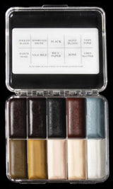 The Skin Illustrator On Set Eye-Zombie Palette is a compact version of the full size palette, which was created by Department Head Amber Trudeau. It also includes two new colors unique to this palette: Moore'gue Bruise and Pooled Blood.