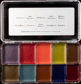 Duncan Jarman's Washes is a custom palette created for the Oscar nominated British makeup artist, Duncan Jarman. While this collection contains colors recognized in the Skin Illustrator arsenal, these washes are designed to be applied for a more buildable, translucent painting style than what is generally used with the regular Skin Illustrator colors. These washes are not as opaque as those found in the traditional palettes, yet they still maintain the same long lasting staying power.