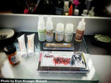 Created for American Horror Story's Makeup Dept. Head, Eryn Krueger Mekash.  This unique palette contains two new colors specifically designed by her makeup crew for the AHS series.  'Coven' and 'Assylum' were added to the palette to meet the demanding needs of AHS.  From beauty and old age to bloody zombies and witches, the American Horror Palette is an intrigal part of this award winning show. Also available:  Eryn Krueger Mekash's On Set American Horror Palette