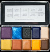 The Guardians Palette is a David White created collection, specifically designed for use on the block-buster film, Guardians of the Galaxy.   This unique mix of colors is the first such custom palette to include a metallic color from the Alchemy Palette, with regular Skin Illustrator colors.   The colors included are: Cobalt Blue (Alchemy), Purple Justice, Black, Ultra Blue, Rice Paper, Corpse Yellow, Light Sienna, Warm Ochre, Prime Yellow, Midnight Brown.