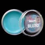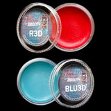 The Anaglyph Singles feature the colors Blu3D and R3D which are designed to work with most 3D glasses. Giving you the ability to create a working 3D effect to a makeup. Colors also work well for red / blue light reveal illusion makeups. Also available in Liquids, and an On Set Palette.